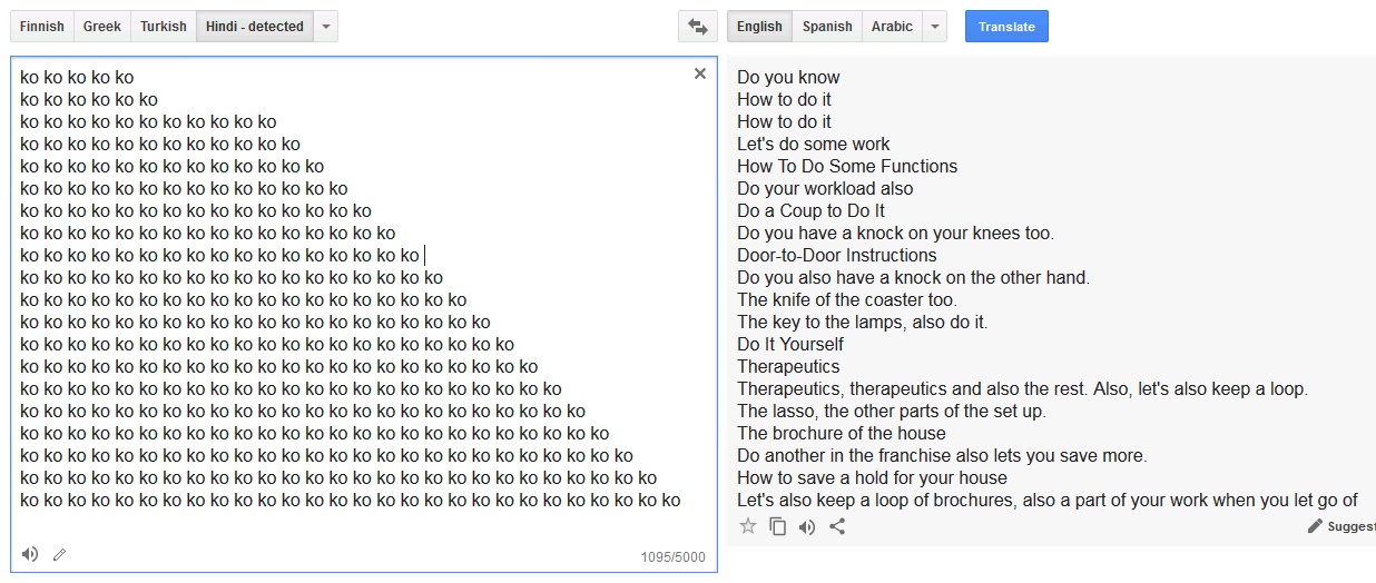 Google Translate also has an issue translating repeated digits: "12" repeated 60 times, translated from Turkish, is "128". Translations of digits from Japanese contain even weirder glitches.