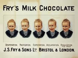 To the best of my belief I have never encountered Cröwer Nacktarsch, but your comment reminds me of something I have not seen since my childhood days — Fry's Five Boys chocolate. The wrapper featured five variants of the same boy's face, each face in turn depicting one of five emotions — desperation, pacification, expectation, acclamtion, realisation (the last with the sub-text "It's Fry's !").